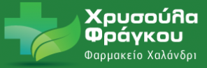 Το φαρμακείο Χρυσούλα Φράγκου στο Χαλάνδρι, το οποίο λειτουργεί εδώ και 20 έτη, είναι ένα μοντέρνο φαρμακείο, πλήρως εξοπλισμένο, όπου το άρτια καταρτισμένο προσωπικό του θα σας προσφέρει φιλική εξυπηρέτηση και ενημέρωση σε ό,τι χρειαστείτε. Στόχος μας είναι να σας προσφέρουμε τις καλύτερες υπηρεσίες μας και για το λόγο αυτό, ενημερωνόμαστε συνεχώς σχετικά με τα νέα προϊόντα και τις καινοτομίες στο χώρο των παραφαρμάκων. Επιπλέον, μπορούμε να σας παρακολουθούμε σε απλά θέματα υγείας, καθώς υπάρχει δυνατότητα μέτρησης της πίεσης με επαγγελματικό πιεσόμετρο.