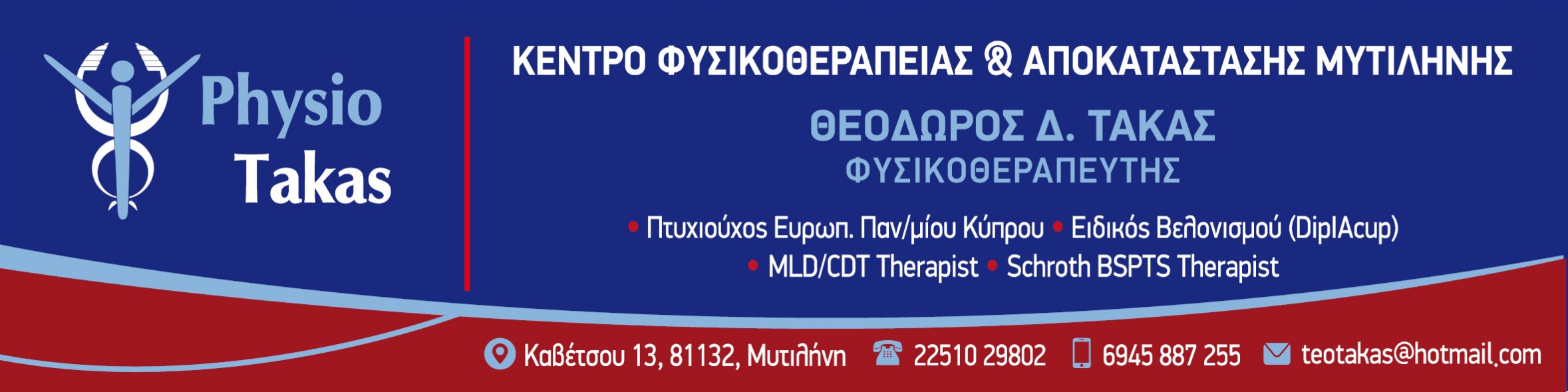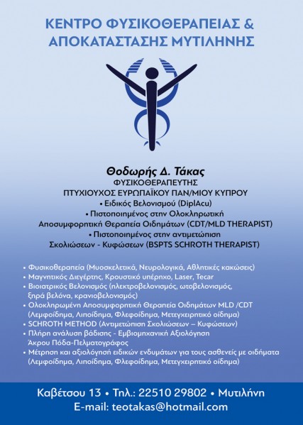 Facebook page: Τάκας Δημήτρης και Τάκας Θοδωρής – Κέντρο Φυσικοθεραπείας και Αποκατάστασης
